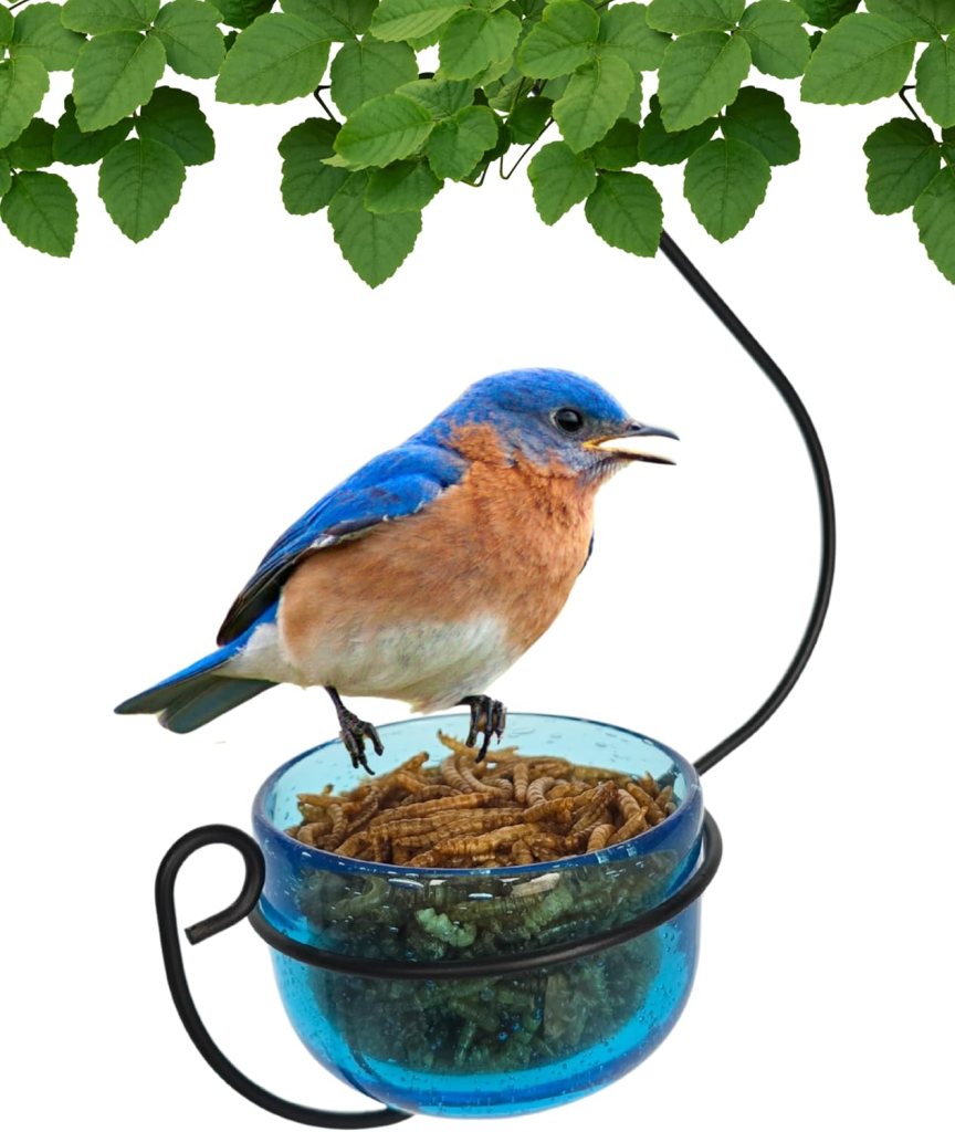 Perfect for mealworms or small fruit chunks, especially if placed near a branch. Bluebirds will perch nearby, scope things out (they are cautious diners), and then drop in for a snack.