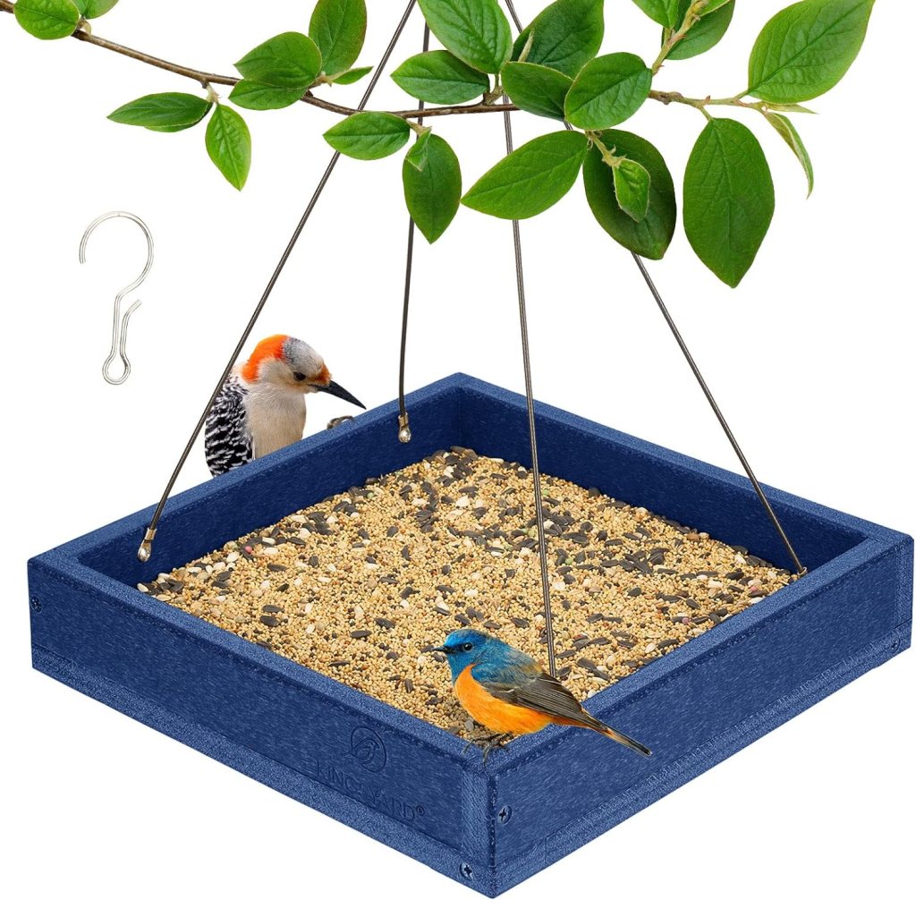 Bluebirds forage on the ground in nature, so a flat, open platform feels familiar. Load it with mealworms, chopped berries, or softened raisins. Just be prepared to guard it from seed-loving freeloaders like sparrows.